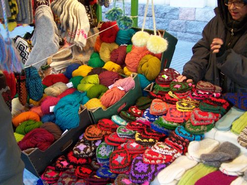 Yarn and hand knits at Riga's Christmas market