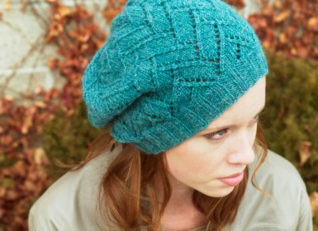 This turquoise hat is worked in Ultra Alpaca Light, which is a perfect yarn for showcasing the lacy stitch pattern.
