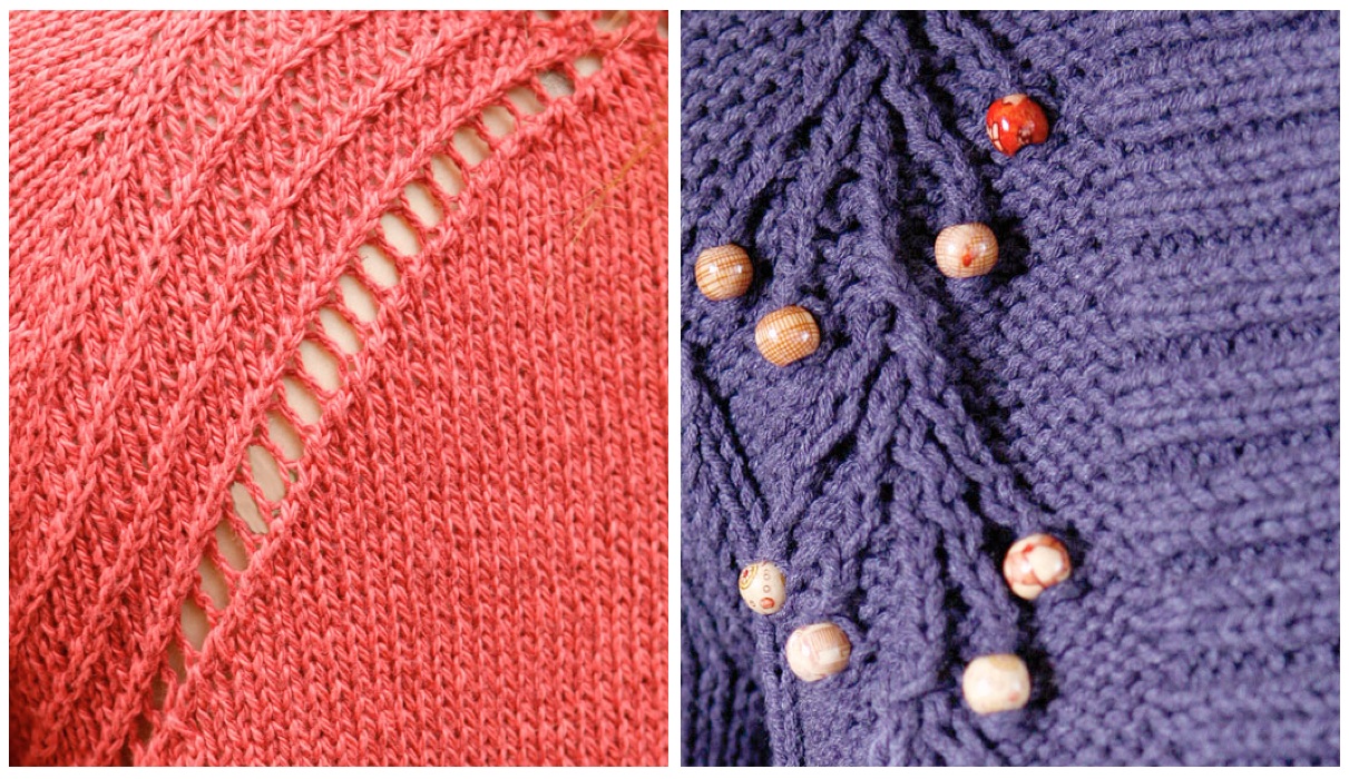 Twist stitches (the intentional kind) are a nice way to add surface texture to your knitting. The examples below show twist stitches in action (Tolland on the left, Ria on the right). There’s also a handy how-to video on our website if you’re interested in learning the basic twist stitches.