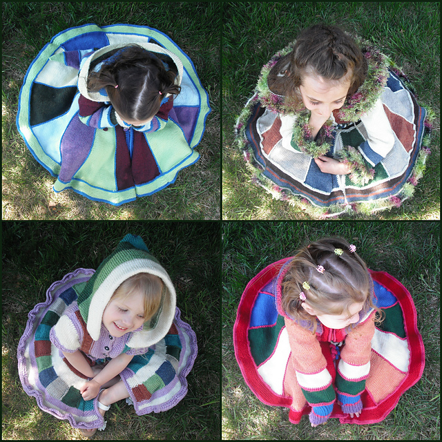 When I was a little girl, I would have loved to have a knitted sweater coat like the ones Jessie Rayot made for her four-year-old twins.  Okay, if I’m being totally honest I still want one as an adult!  With beautiful colored panels, a full skirt for spinning and an adorable elfin hood, Rayot’s Kat Coat may look as though it’s straight out of a fairy tale.  But she openly admits her inspiration came from the upcycled sweater coats featured on Katwise.com.