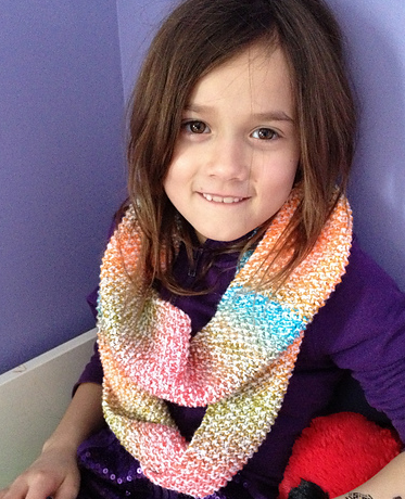 Between the self-striping effect of Berroco Comfort Print and the texture of the seed stitch pattern, a simple scarf never looked so cool. Raveler NewfieCatt actually knit two at once – one for each her daughters – using a shade called Jungle Book (#9865). The bright colors are great for kids and she only needed one skein per scarf. Of course, the pattern can be easily adapted for adults. The only thing you might want to change is the colorway and the length.