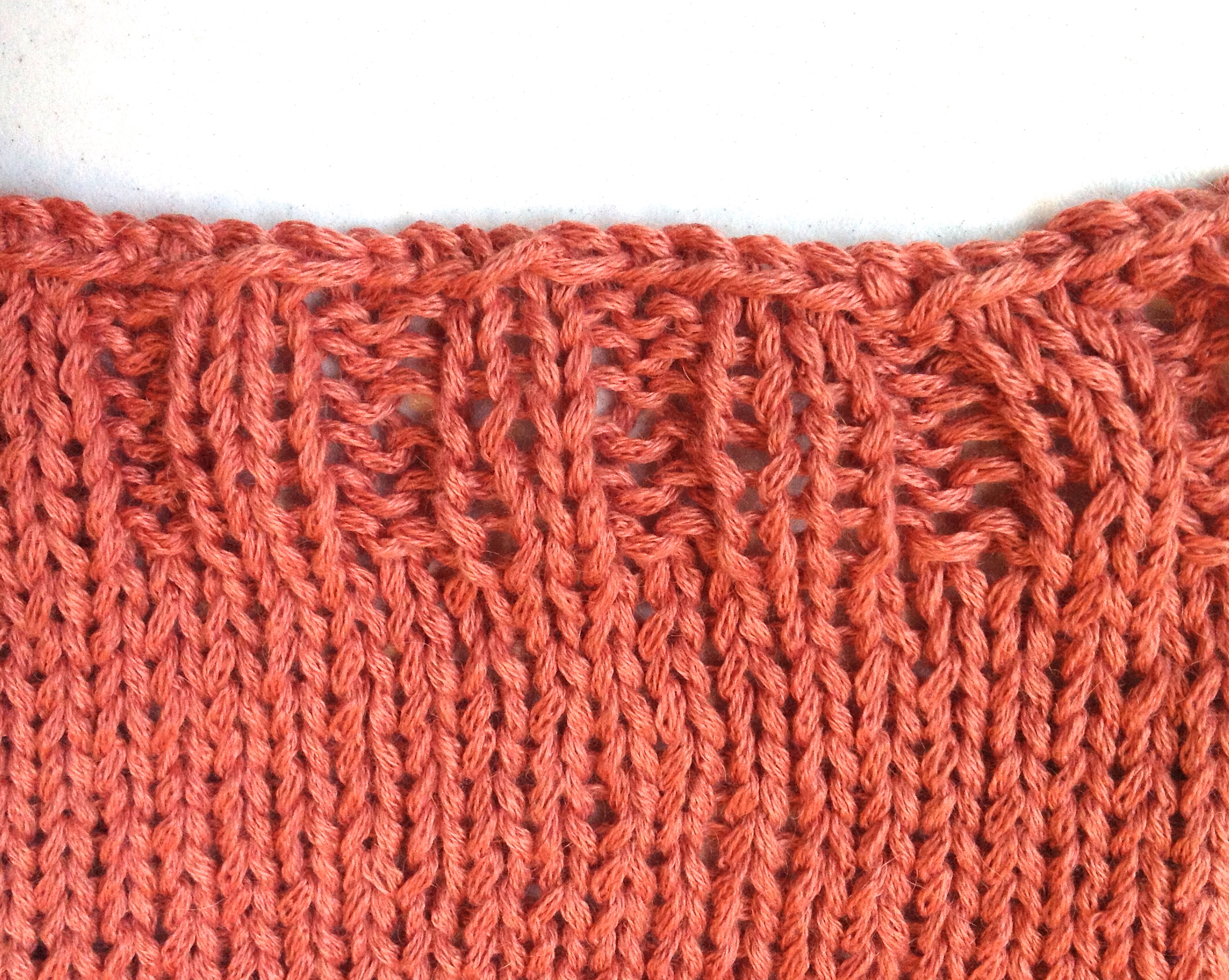 She pulled out an almost-completed sweater worked from the top-down, along with her knitting pattern. “I’m all ready to start binding off, but I’ve never encountered this particular phrase before,” she said, pointing to the last line. I took a closer look at the pattern and saw the words, “bind off in pattern.”