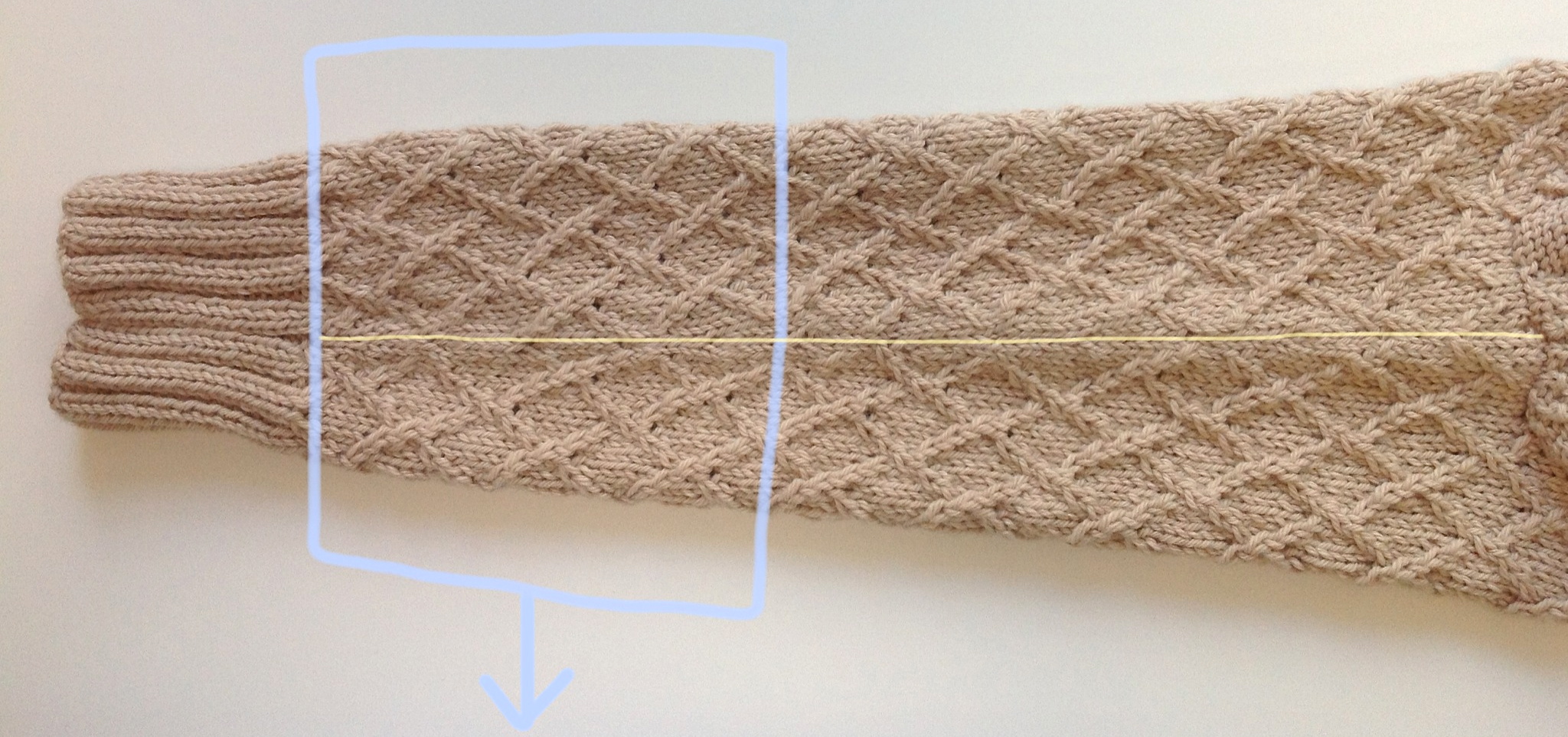 Here is the sleeve laid flat. You can see that gradually more rows of diamonds are formed as you increase.