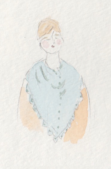 This summer I found a shawl at a flea market in Portland, ME. It’s a triangle shawl made of white silky yarn and trimmed with fringe that sways with my every move. This shawl has become one of my favorite accessories because it can be manipulated and worn in a variety of ways, making the form look  different each time!