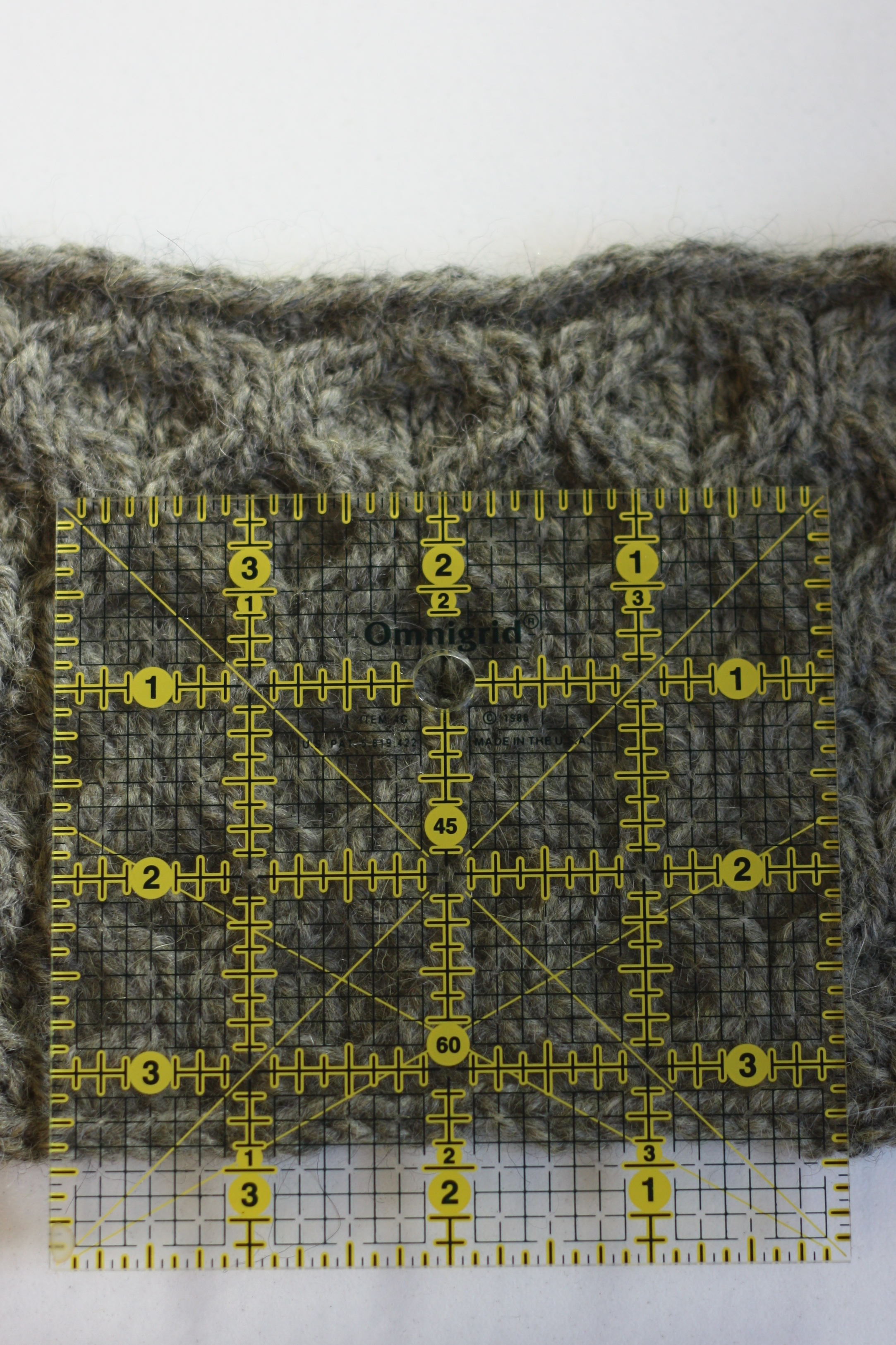 It’s tempting to skip this step if you’ve knit with the yarn before and think you know what it will do. Well, with this all-over cable I knew there would be some difference in the before and after washing gauge, but even I was surprised by the change of a full 3/4 of an inch!