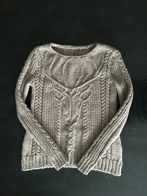 And Ravelry user LuckyJennyKnits made Norah Gaughan’s gorgeous Stag Head Pullover with Berroco Vintage®!