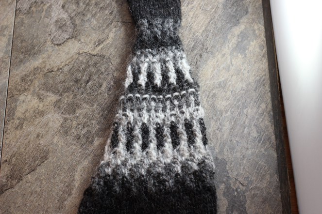 When I begin to work on a new sweater design, color selection is always the most important consideration for me. I was particularly inspired by this photo of veins of volcanic ash found in an Icelandic cave. I immediately began to think about how I could play with the various shades of gray represented here. I also thought about how I could work these colors as stripes, either horizontally or vertically.