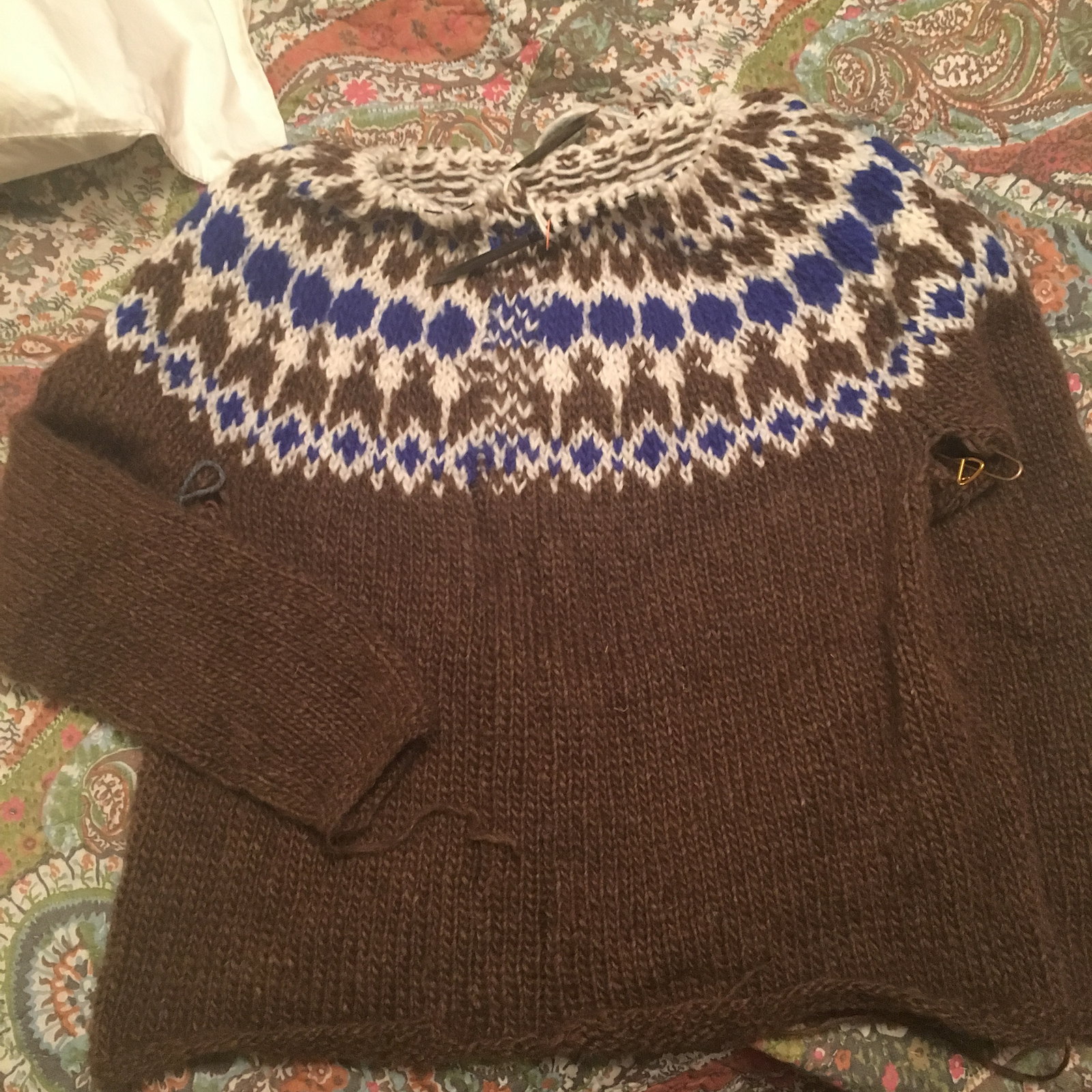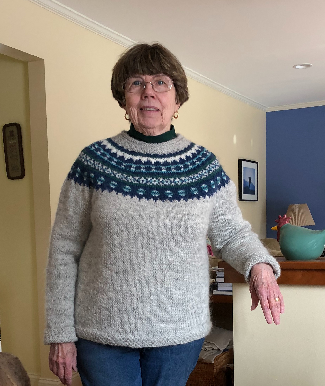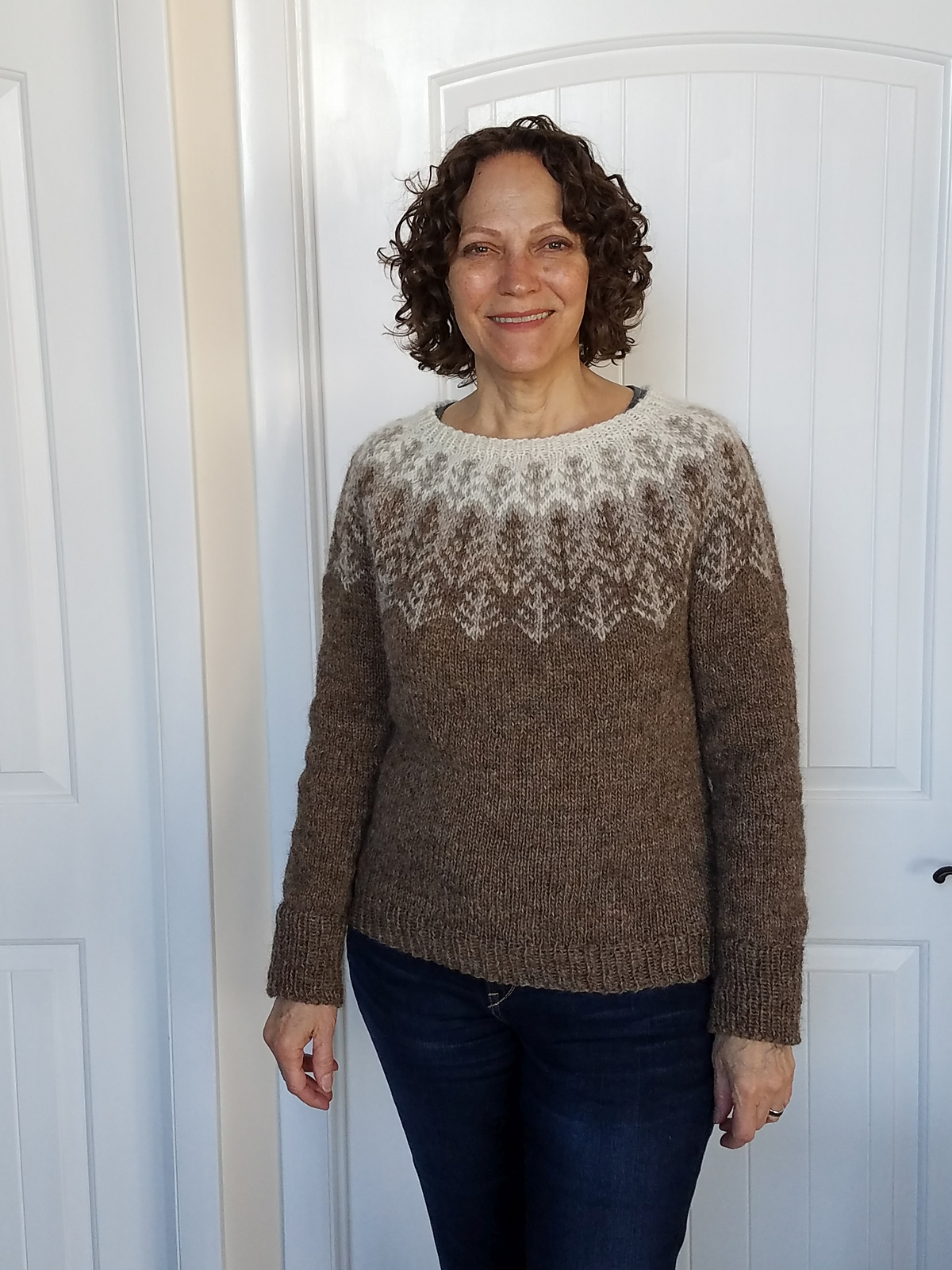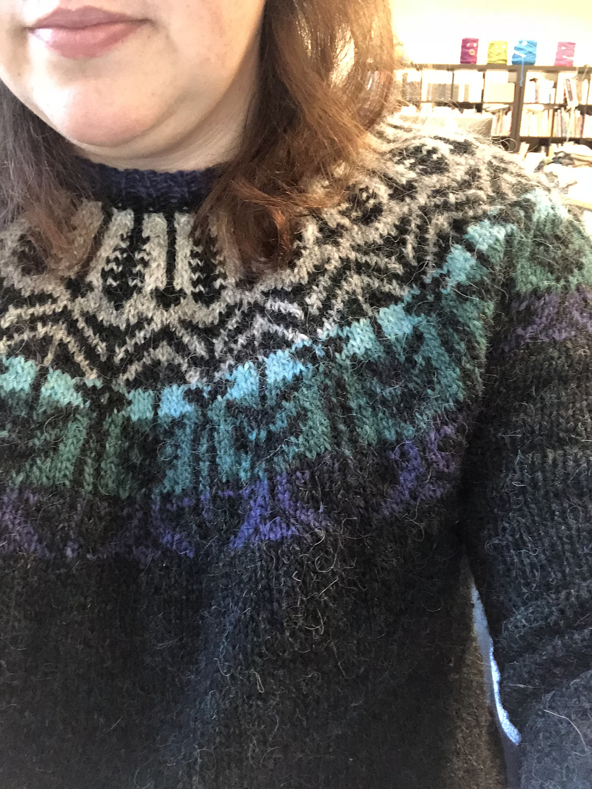 Our very own Donna Yacino knit her first Lopi sweater—Oraefi!