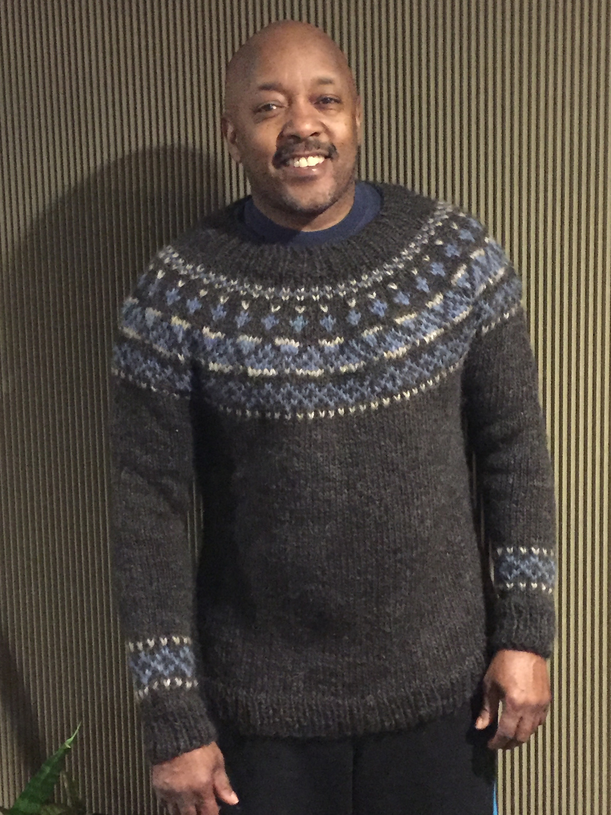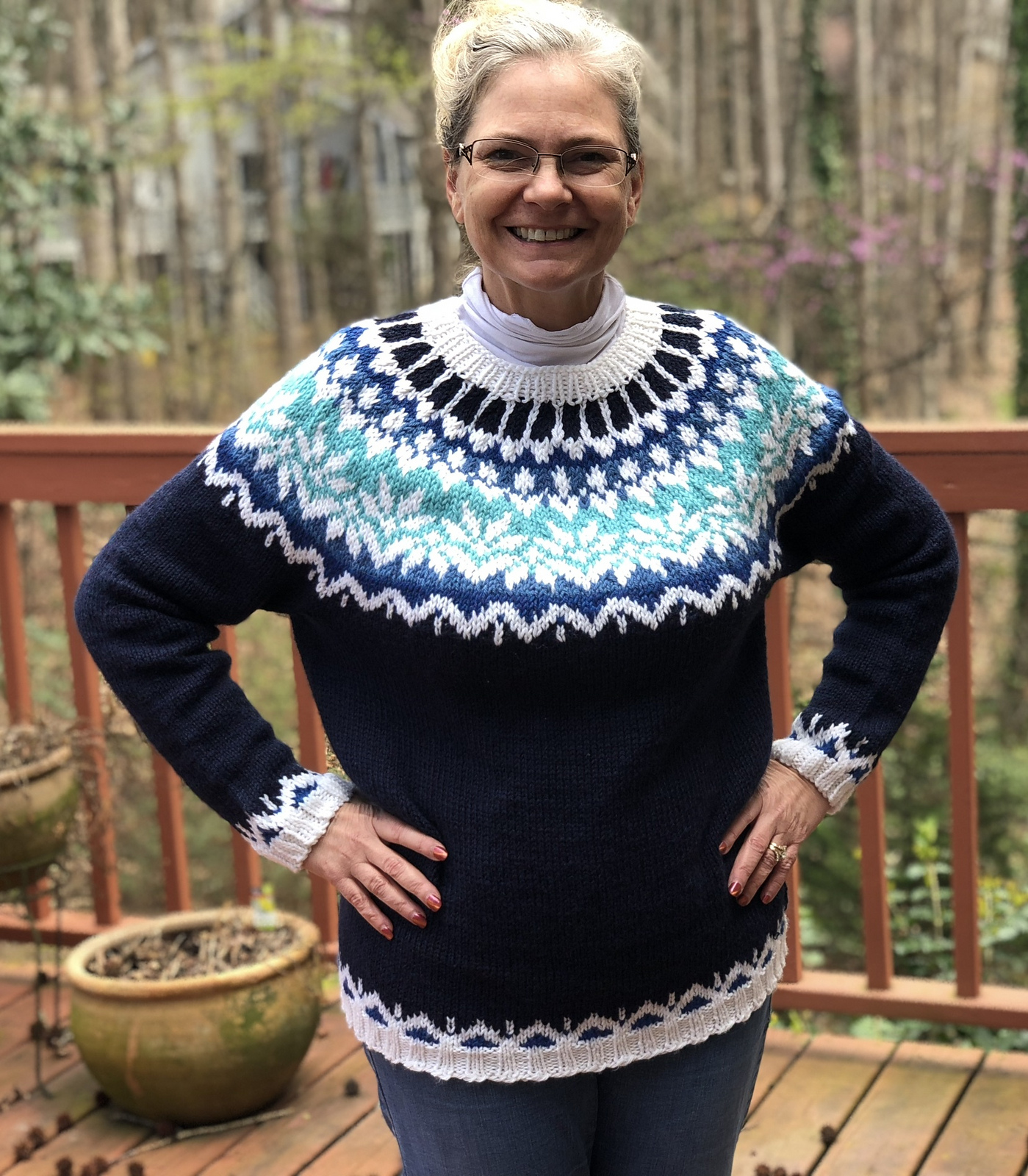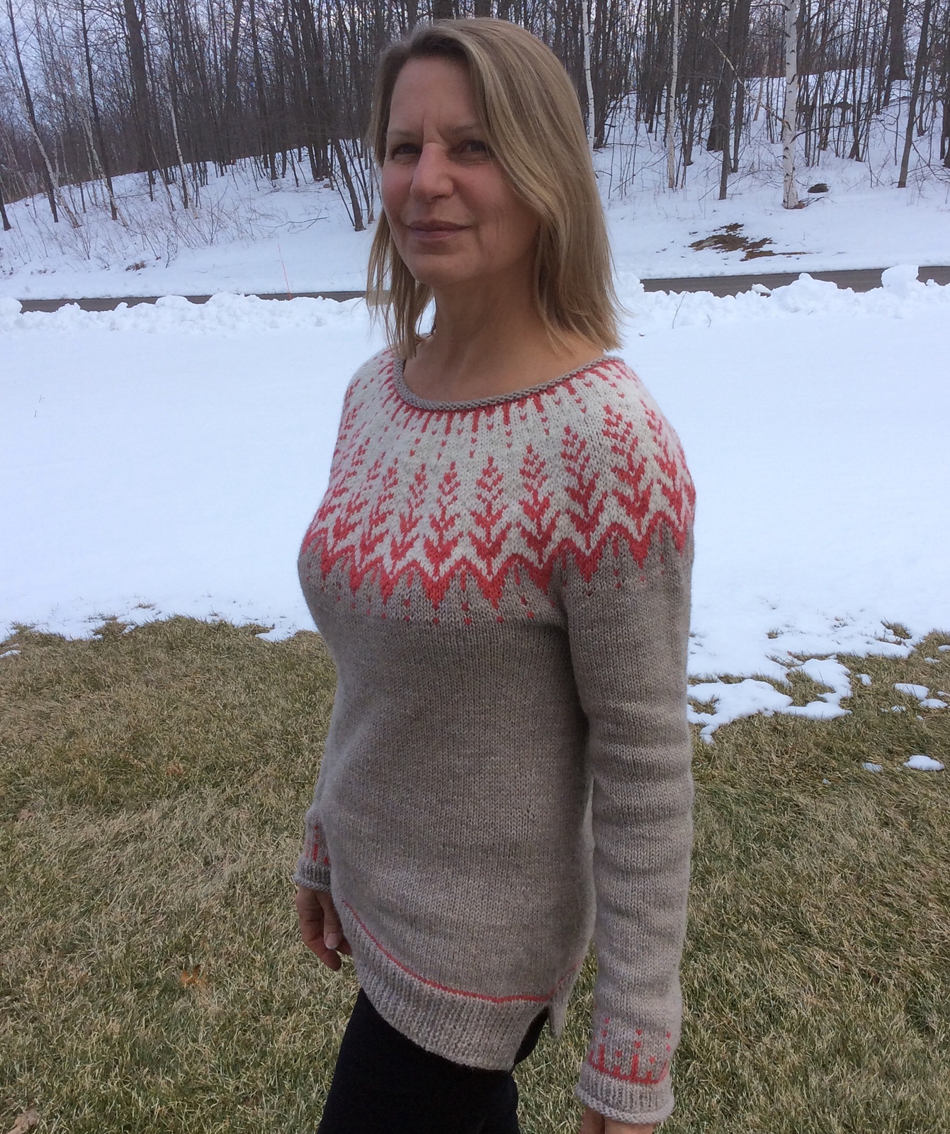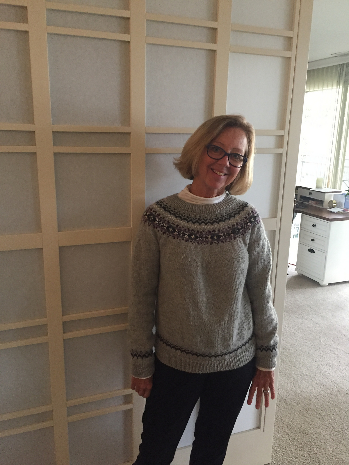 Our very own Donna Yacino knit her first Lopi sweater—Oraefi!