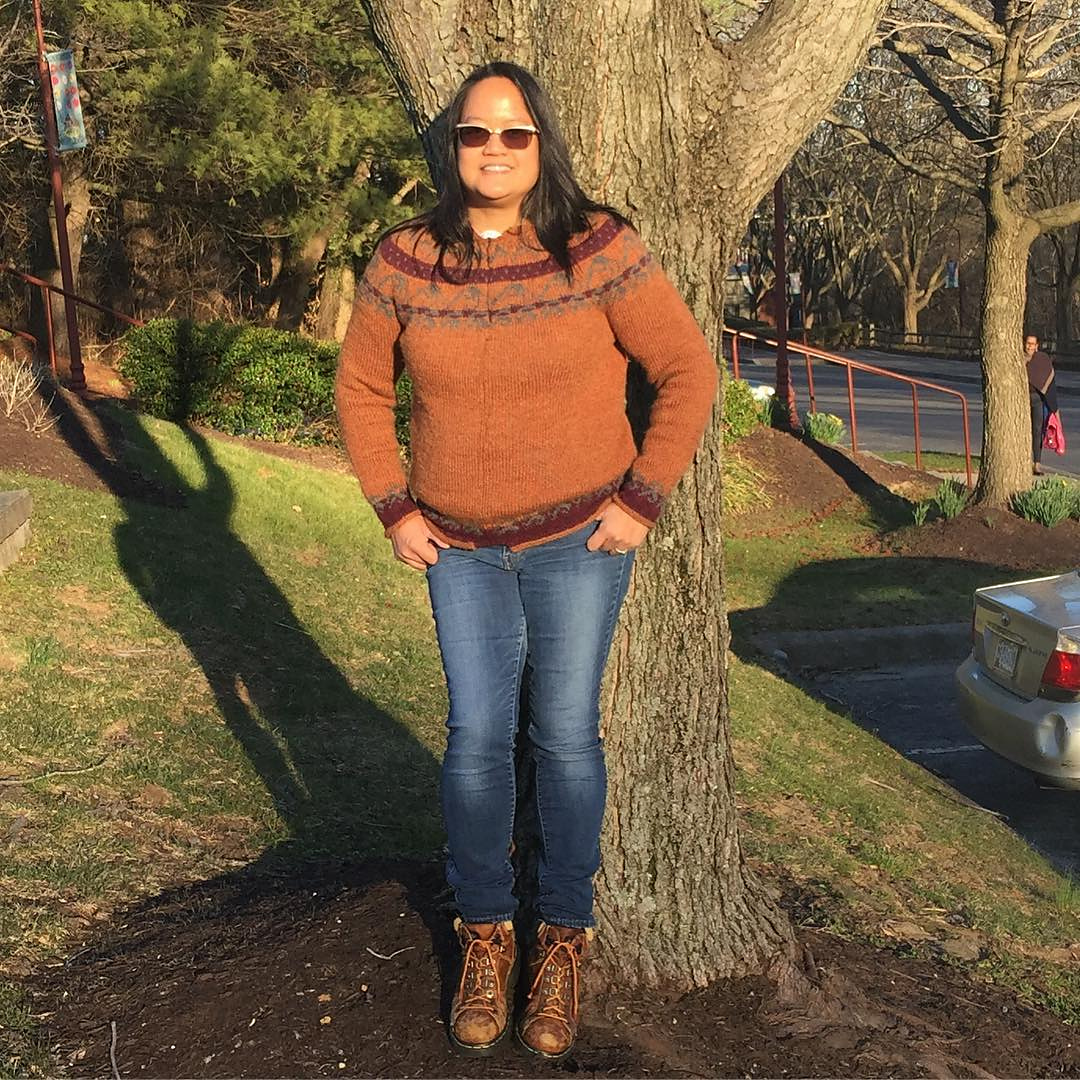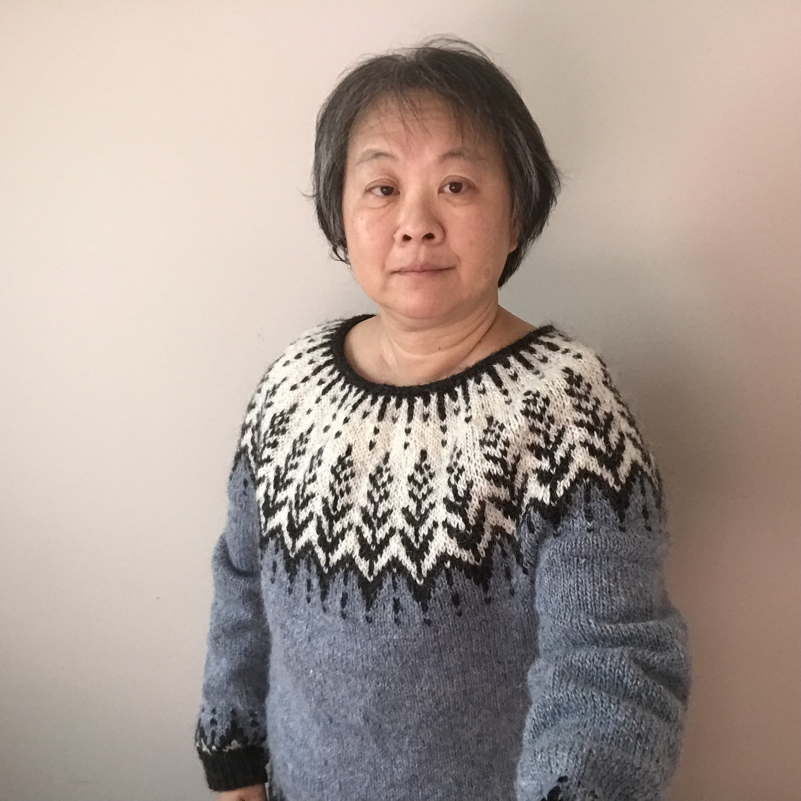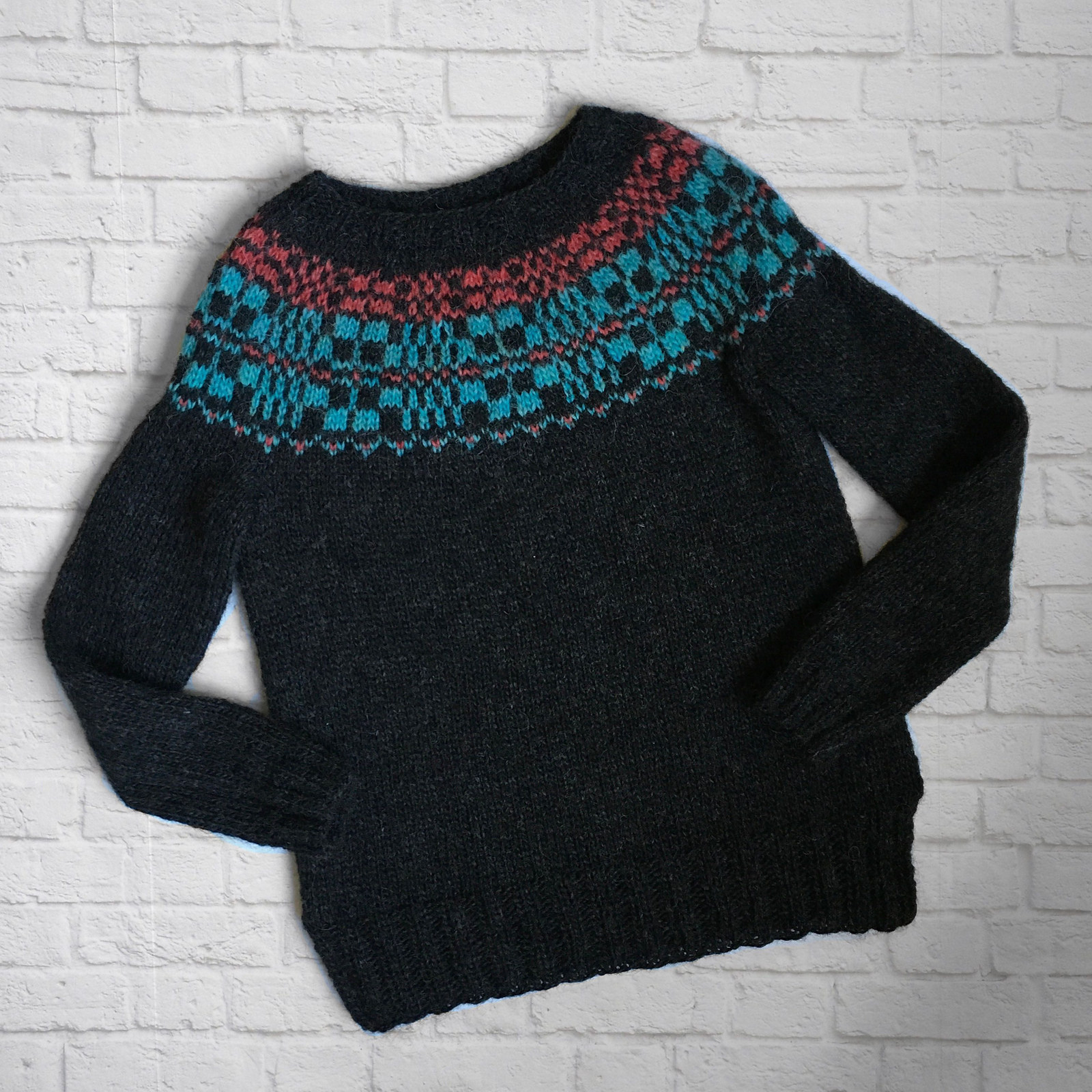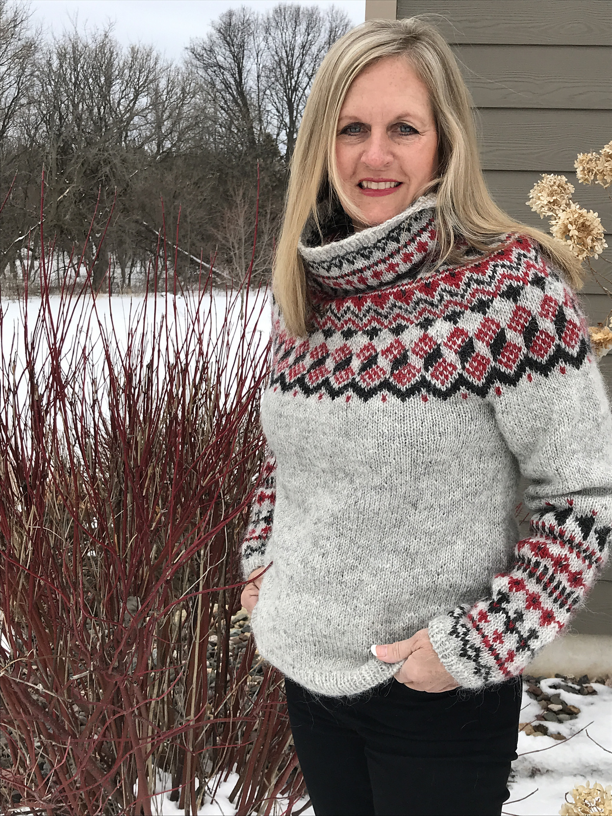 Our very own Donna Yacino knit her first Lopi sweater—Oraefi!