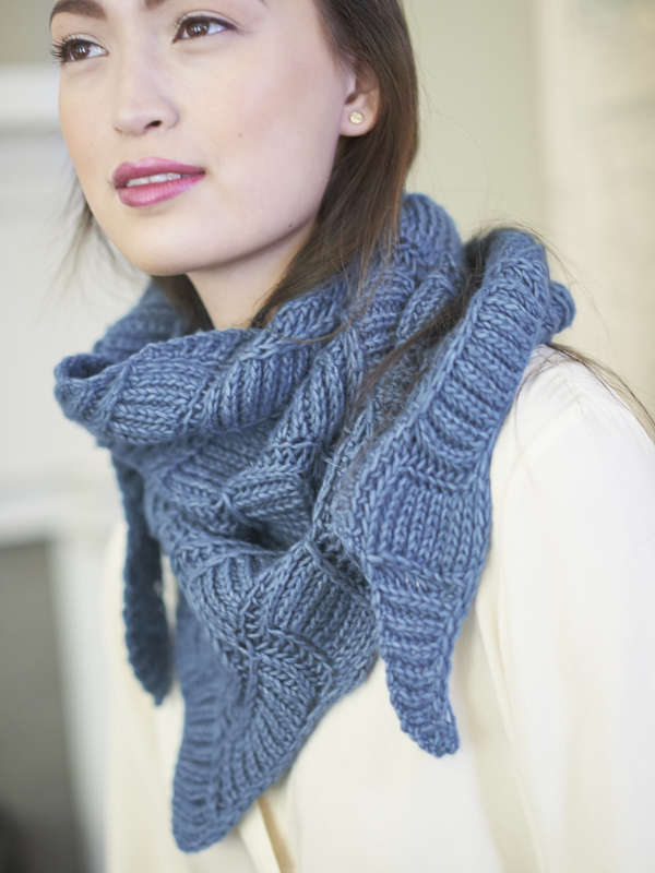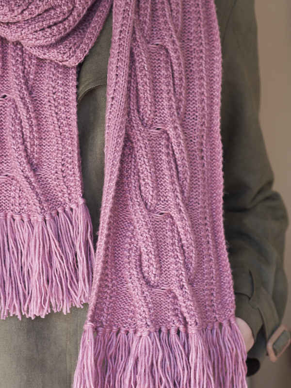 Terrell is a lovely scarf with a clever cable motif with fringe on the edge because who doesn’t love fringe!
