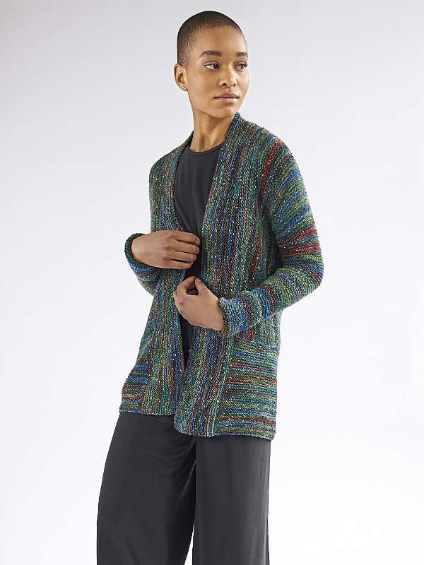 This week’s pattern is Lovage designed by yours truly. Knitted in our super popular Sesame yarn, this cardigan is knit side to center all in super soothing garter stitch, with a peplum and collar added on. The pattern is free with yarn purchase from your LYS or you can find it in the Berroco booklet #407 Sesame (Print booklets can also be purchased through the dropship program, PDF’s are always available on Berroco.com).
