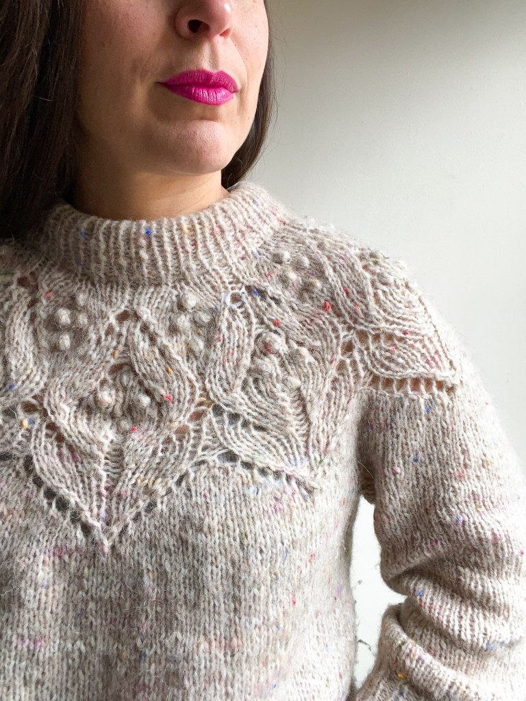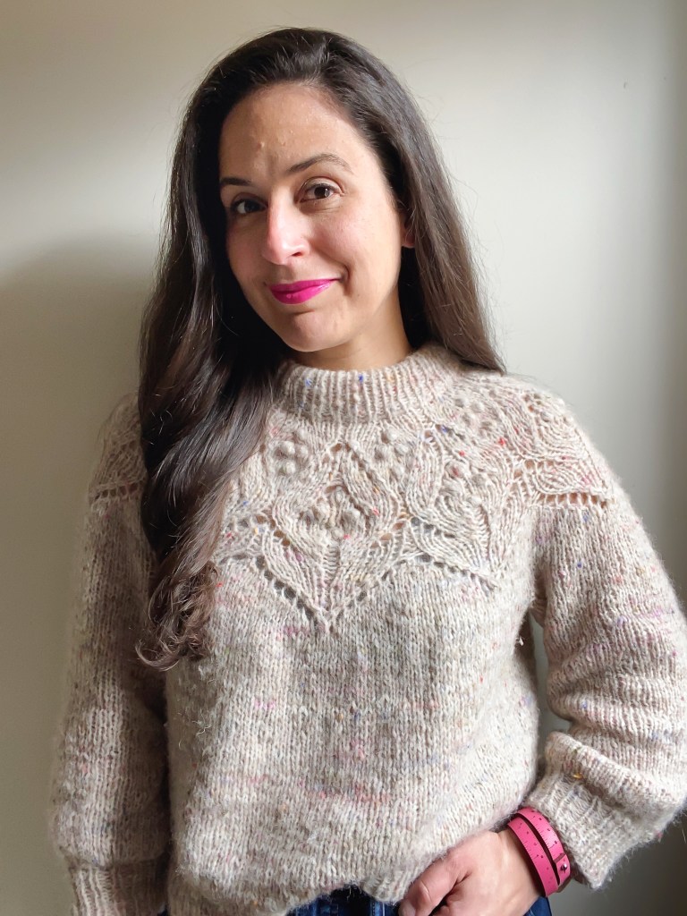 Turns out I didn’t have to make many, if any, changes! I added the neck shaping where she did in her pattern (below the motif) and I added a row or two to give me a longer yoke depth before dividing for the sleeves.