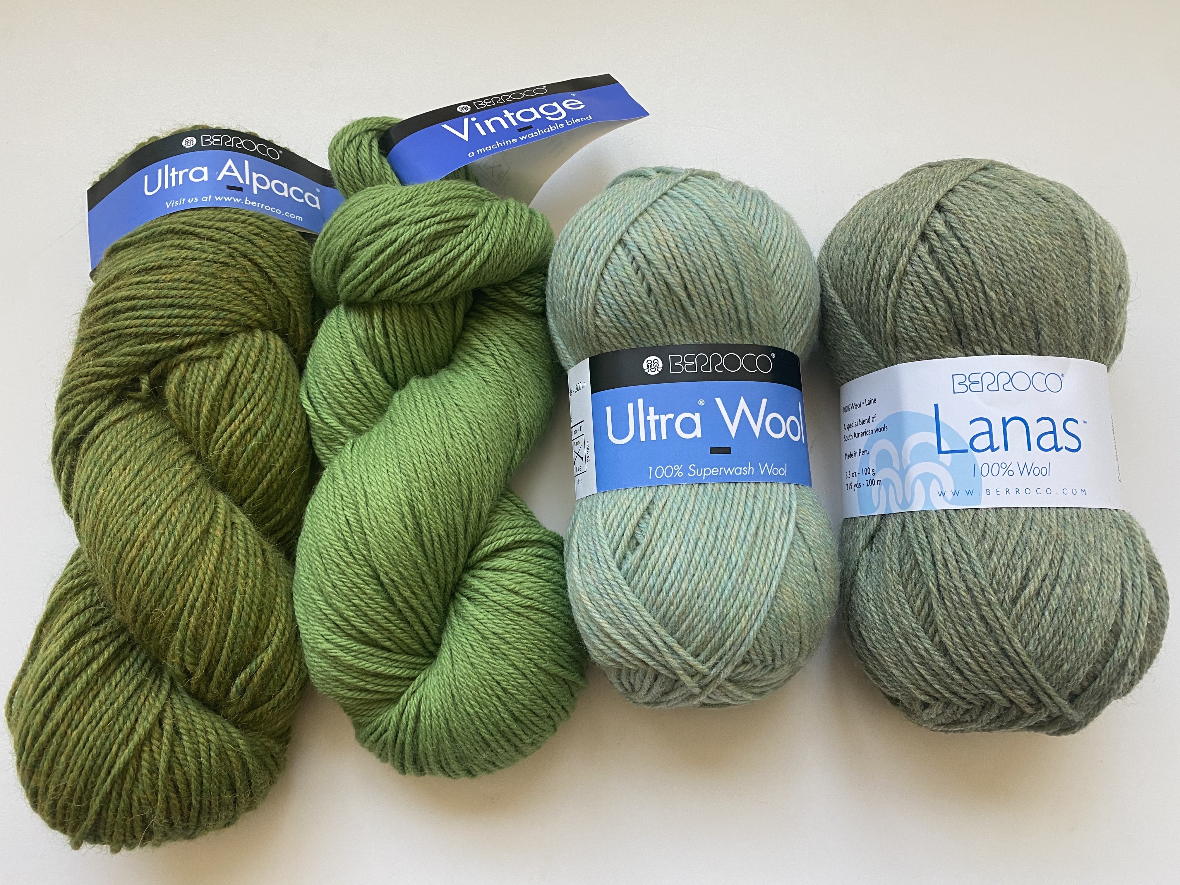 These are just 4 of the many yarns in the Berroco lineup that work up to that classic worsted 4.5-5 stitches per inch gauge. You can’t go wrong with any one of them and I confess at times I have chosen one just based on the fact that it comes in a pull skein and I was too impatient to start knitting to take the time to wind a hank! (It happens, right?!)