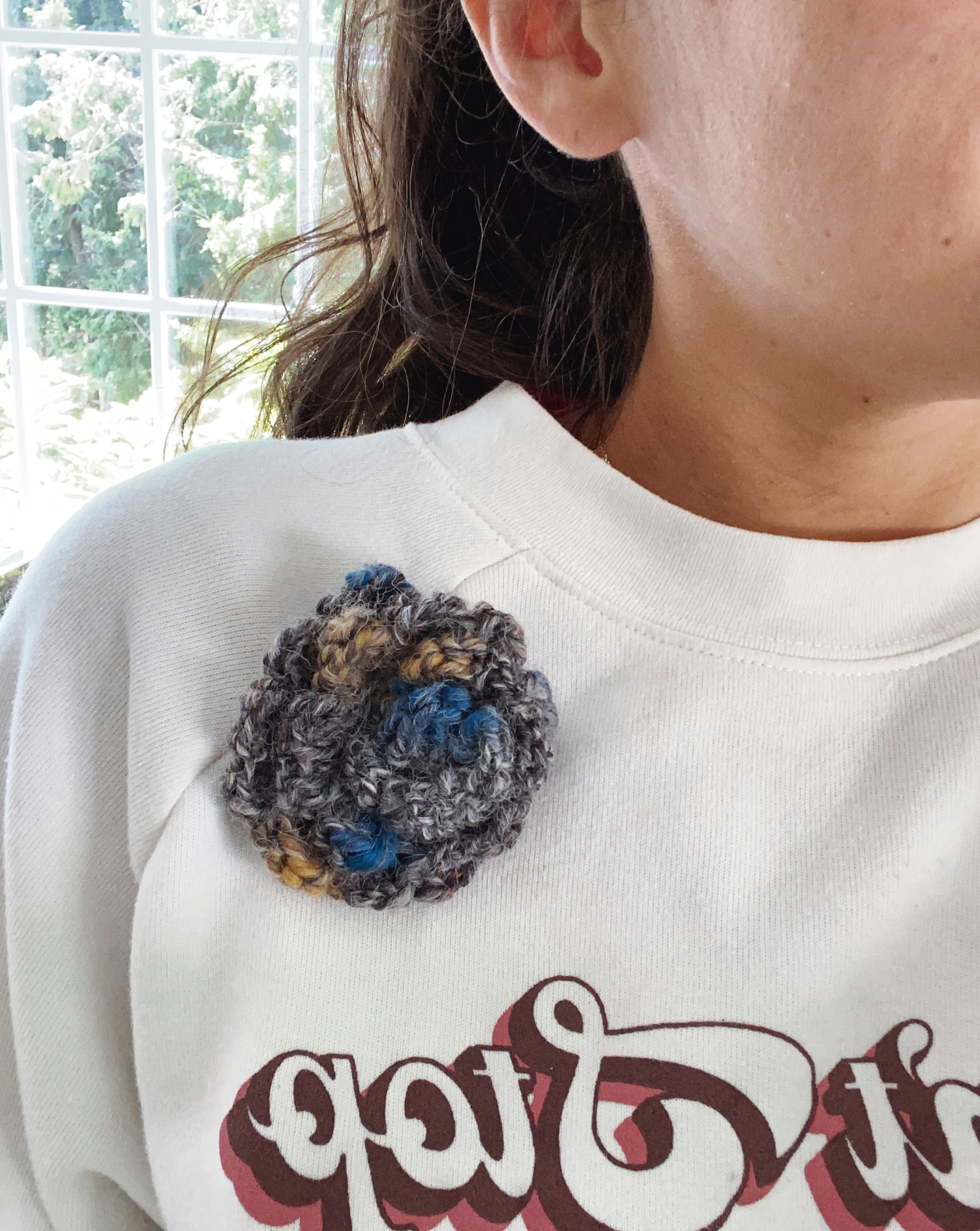 Enter easy crochet flowers! These work up so fast and can be made as big or as small as you want them. Plus, you can use them in so many fun ways. I attached a pin backing to mine so that I can attach it as a brooch but I also love it as a key chain, hair tie, etc. I love these crochet flowers and all their uses!