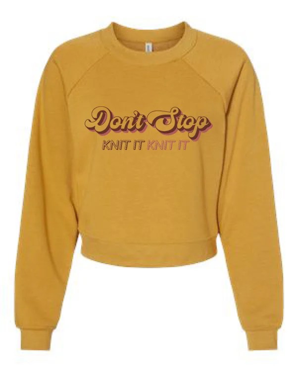 Don’t Stop, Knit it, Knit it, cropped sweatshirt is a perfect gift for your favorite knitter. We love all the things Nerd Bird makers creates with her apparel on top of our lists.