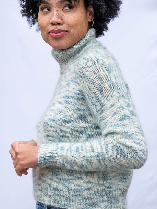 And finally, our beautifully hand-dyed merino Fika in new trendy space-dyed colors! Use it on its own, or pair it with Aerial for extra warmth and softness.