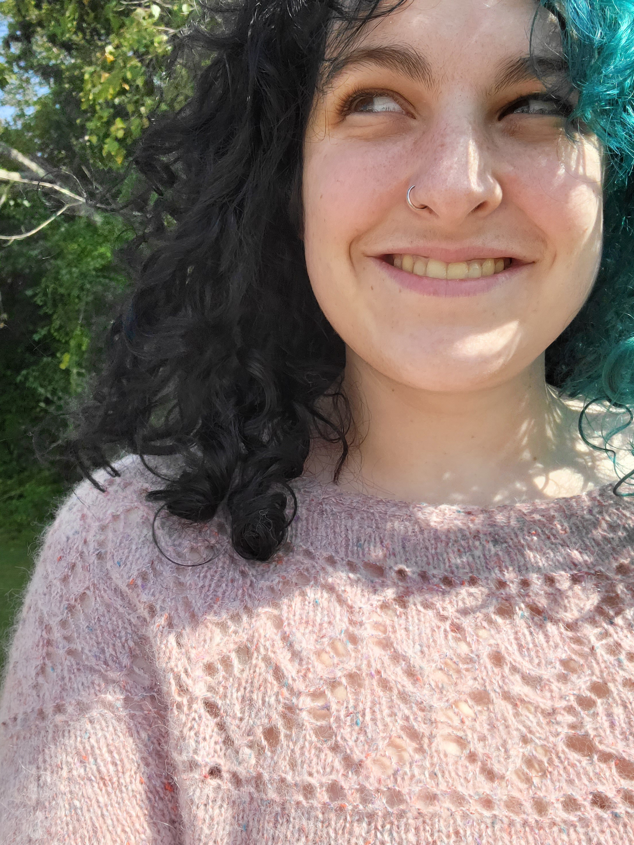 Ballentine is complete! (and my hair is a new color!) I loved making this sweater, it’s so soft and cozy! Mistico is one of my favorite yarns right now. What should I make next? #berrocoyarn #knitting #berroco #knittok #yarn #knit