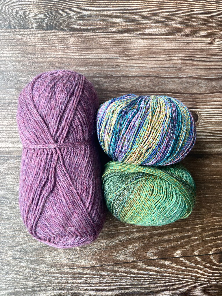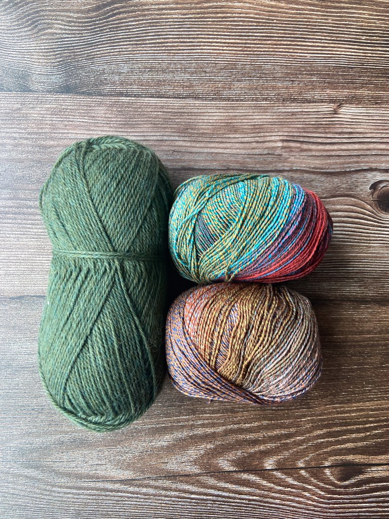 Ultra Wool DK (UWDK) 83118 with Medina 4767 and 4783, UWDK 8331 with Medina 4767 and 4783, UWDK 83153 with Medina 4971 and 4792.