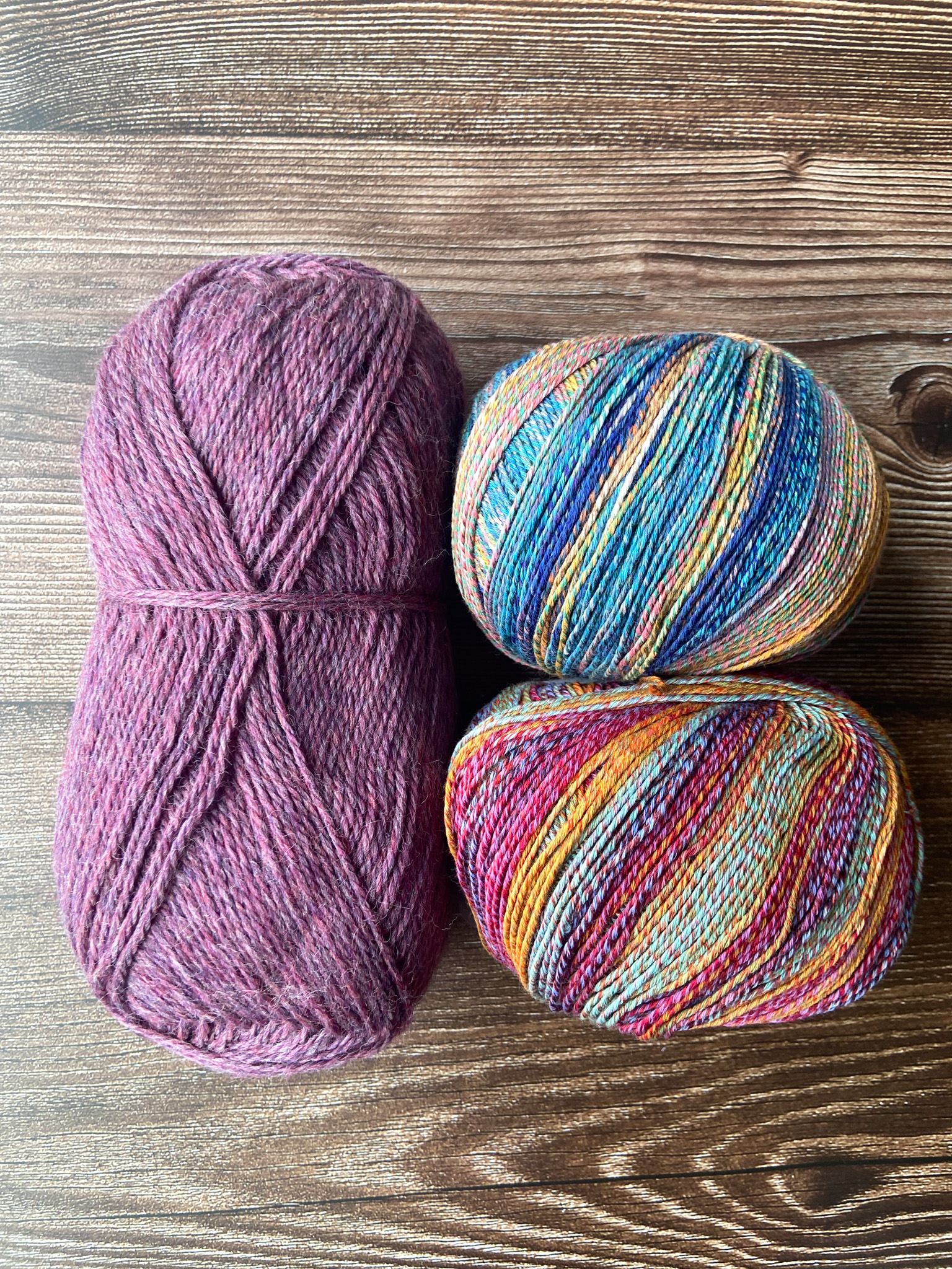 Ultra Wool DK (UWDK) 83118 with Medina 4767 and 4783, UWDK 8331 with Medina 4767 and 4783, UWDK 83153 with Medina 4971 and 4792.