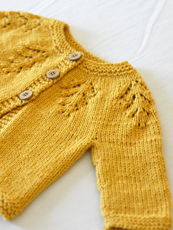 One of our all-time best-selling patterns, Kirby, is a sweet baby cardigan with leaf eyelet details on the yoke. Designed by Åsa Buchta, the pattern was so popular, she designed an adult version, Elmgrove, and a kids version, Wynn.