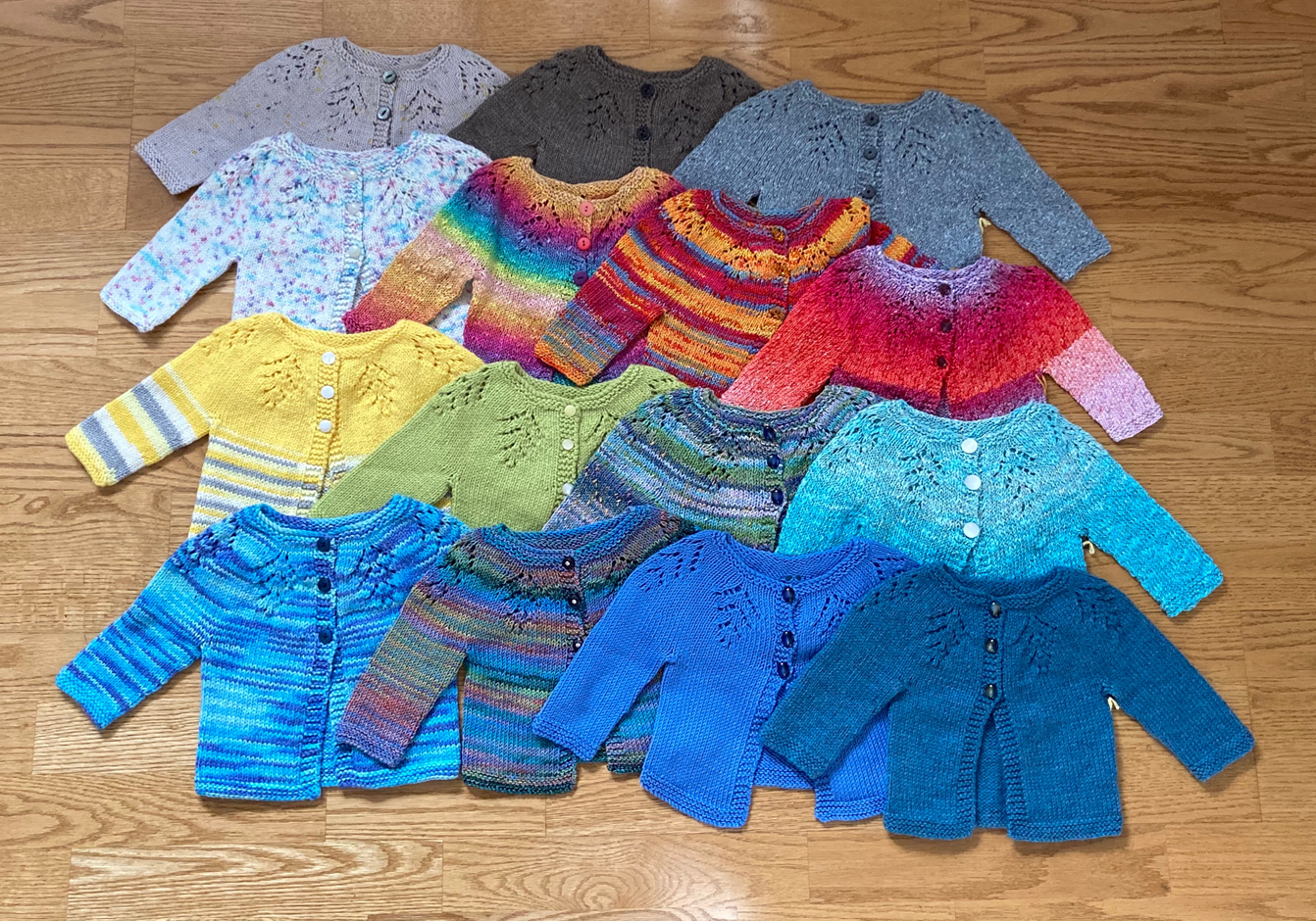 (Yarns used top left to bottom right: Fika, Ultra Wool DK, Remix Light, Vintage Baby Handpaint, Lang Linello, Lang Karma, Lang Paradise, West Yorkshire Spinners Bo Peep, Vintage Baby, Summer Sesame, Isola, Vintage Baby Handpaint, Medina, Modern Cotton DK and Vintage DK.)