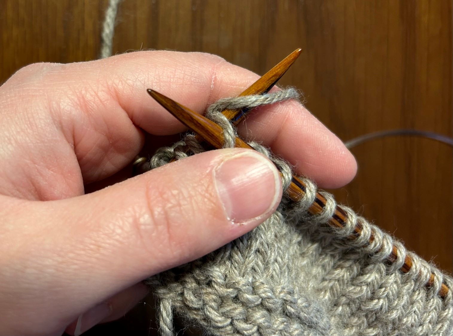 1. With the RS of your work facing you and the working yarn in back, insert your left needle into the back of the first stitch on your right hand needle from left to right.